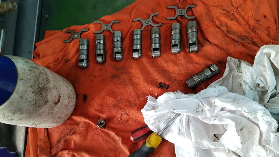 Żeby nie było - to nie jest sam blok, są też inne przydatne części, które pomierzyliśmy i sprawdziliśmy ich stan. Tu już widzisz gotowe, po umyciu, czekające na powrót na swoje miejsce.