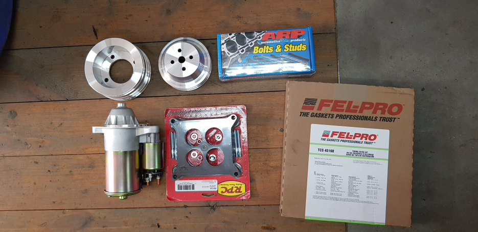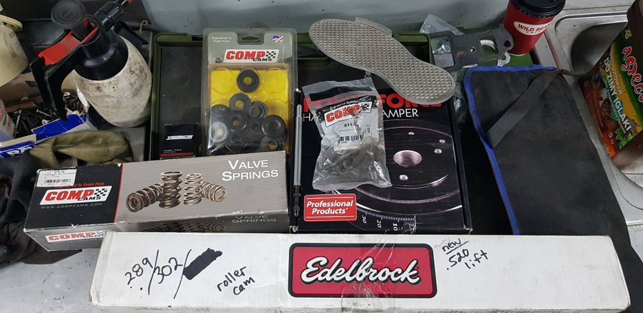 Stwierdziłem, że wałek niewiadomego pochodzenia zamienię na Edelbrock’a 2221. Wałek ten jest lekko „przereklamowany” w swoich opisach na stronie producenta, ale powinien dać więcej elastyczności i dobrze współpracować z dolotem. W związku ze zmianą wałka wypada zmienić sprężyny zaworowe, te wymusiły zmianę talerzyków, do których, z kolei, musiałem dokupić inne zamki... Nowy harmonic balancer jest tu uzupełnieniem, wisienką na torcie można rzec.