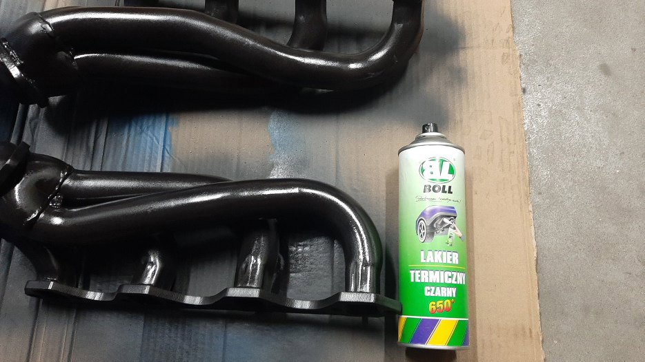 Idąc za ciosem dokupiłem też krótkie „headers’y”. Dlaczego krótkie? Bo auto, które będzie napędzane tym silnikiem nie ma zbyt dużo miejsca, więc, by nie ryzykować, właśnie je wybrałem. Tu Marcin już dorwał się do malowania. Dobry z niego człowiek jest.