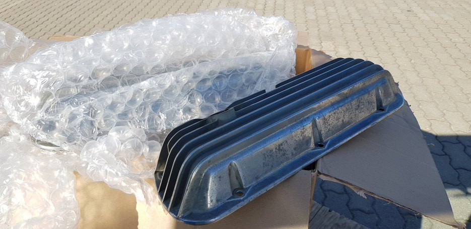 W związku z postanowieniem, iż silnik ma wyglądać „oldschool’owo” i reprezentować pewien styl do którego mam słabość postanowiłem dorwać swoje małe marzenie - żebrowane pokrywy zaworowe. W związku z popularnością Windsor’a miałem jakiś wybór, ale po głowie mi chodził tylko jeden rodzaj- deep’y od CalCustoma. Trochę trwało zanim dorwałem odpowiedni egzemplarz (nie robią ich chyba od lat ’80), ale udało się. W planach jest oczywiście ich rewitalizacja.