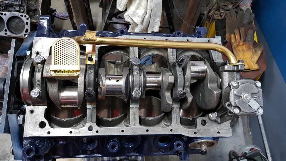 Następnie, używając nowych szpilek, założyłem stopy wału korbowego, wjechała też nowa pompa olejowa o wyższym wydatku oraz smok dedykowany do nowej miski olejowej.