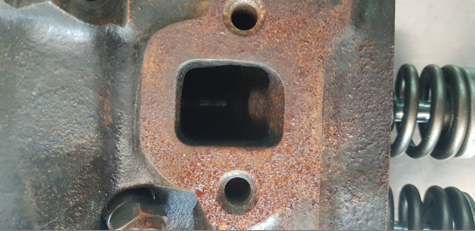 Dużo do zrobienia jest w kanałach wydechowych, przynajmniej w przypadku tych konkretnych godzin. Bonusem będzie oczywiście możliwe „wyprostowanie” drogi, a więc logicznym będzie skupić pracę głównie na „suficie” kanałów. Oprócz usunięcia garbów powiększyłem same kanały i, czego nie widać na zdjęciu, „wyobliłem” prowadnice zaworowe.