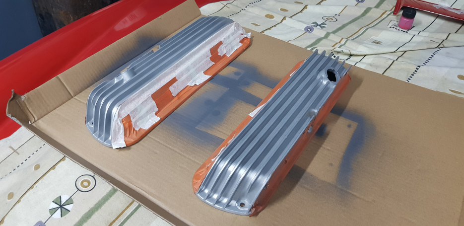 Koncepcji wykończenia było kilka - najpierw kolor silnika plus polerowane żebra, potem polerowane boki, kolor silnika między żebrami i żebra polerowane, w grę też wchodził, a jakże by inaczej, złoty kolor. Zacząłem więc od szkiełkowania powierzchni które miały być malowane.