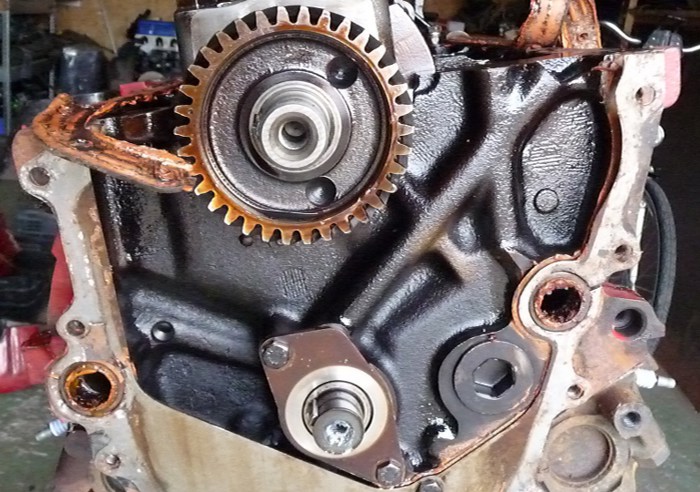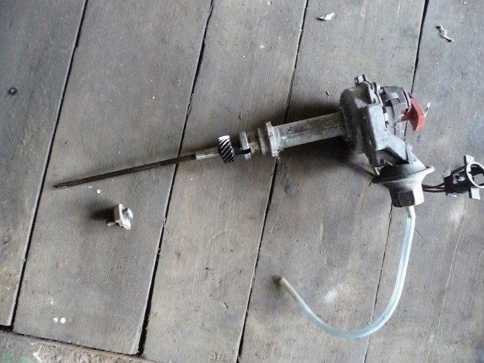 Pierwszy dowód na to, że ktoś to już wcześniej "naprawiał". Aparat zapłonowy wyjęty razem z prętem napędu pompy oleju. A pręt powinien zostać w bloku, bo wyjmuje się go po zdjęciu od spodu pompy oleju - ma pierścień zabezpieczający (przynajmniej powinien mieć).