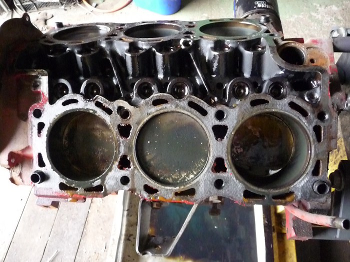 Brudno, bo silnik był zalany olejem. Co ciekawe nagaru jak na lekarstwo, progów na cylindrach nie ma, ślady honowania jeszcze są - trafiła się dość dobra baza na silnik.