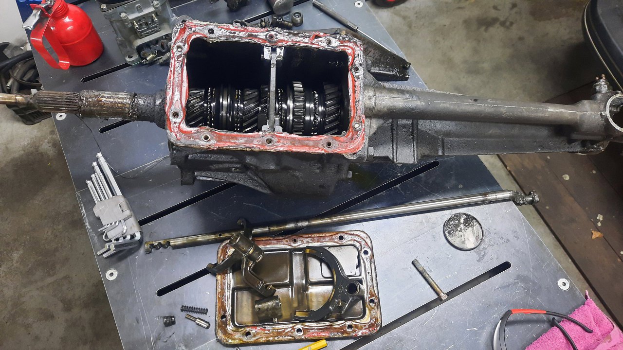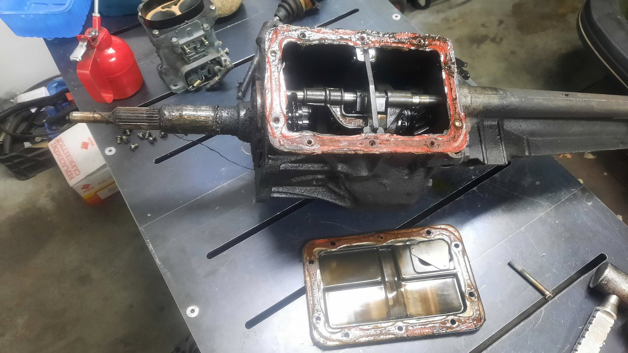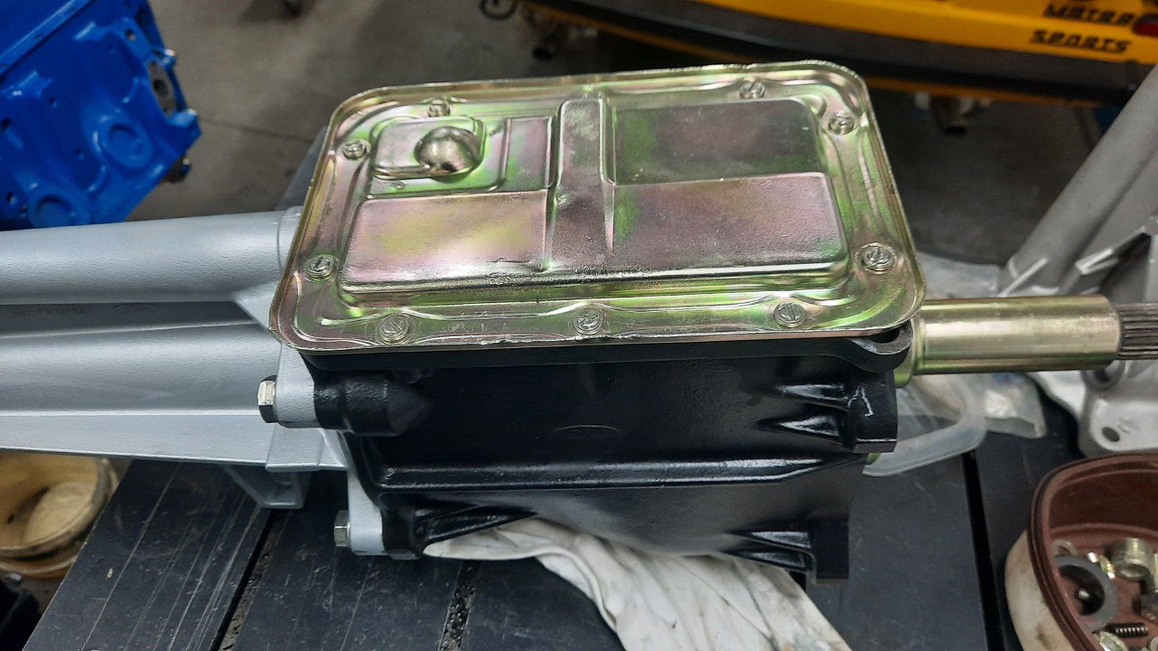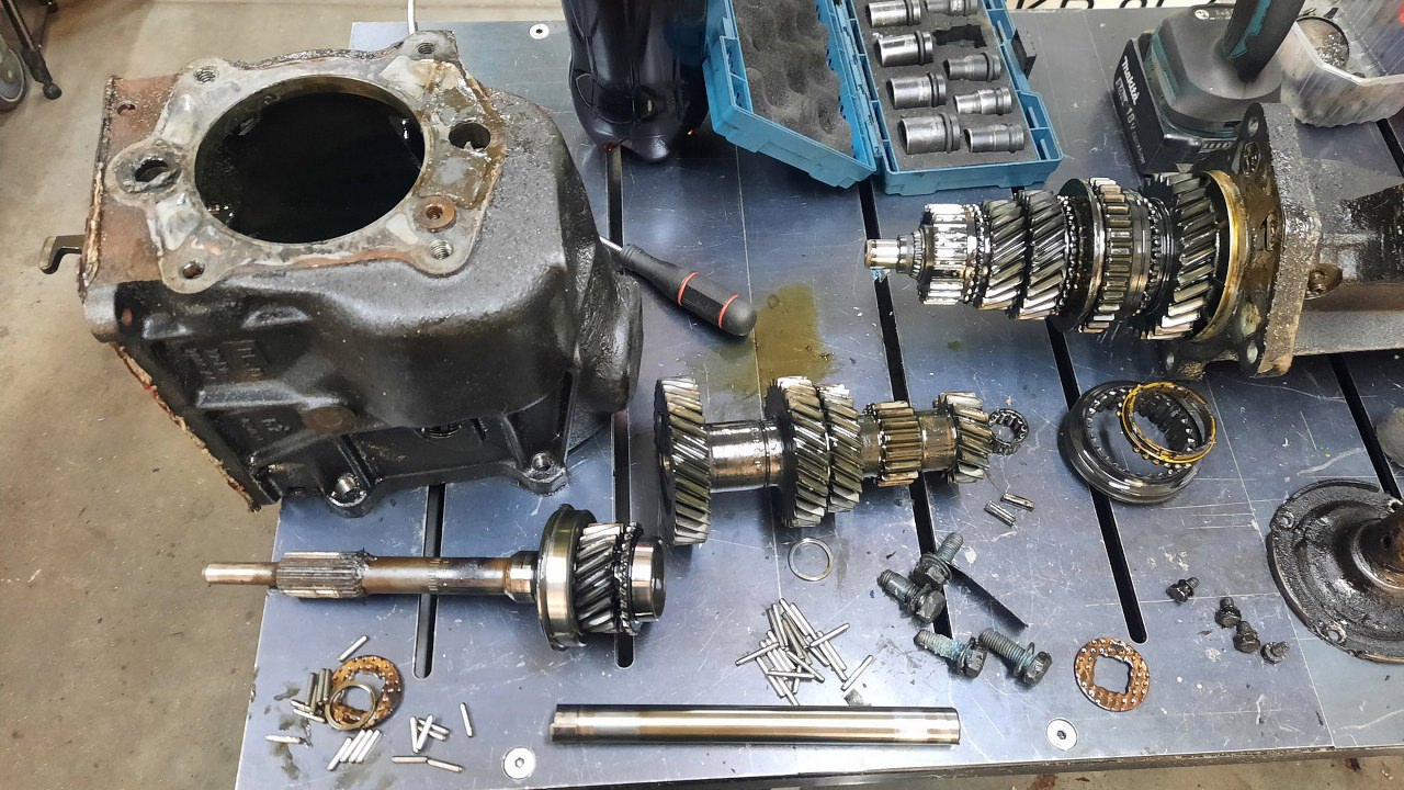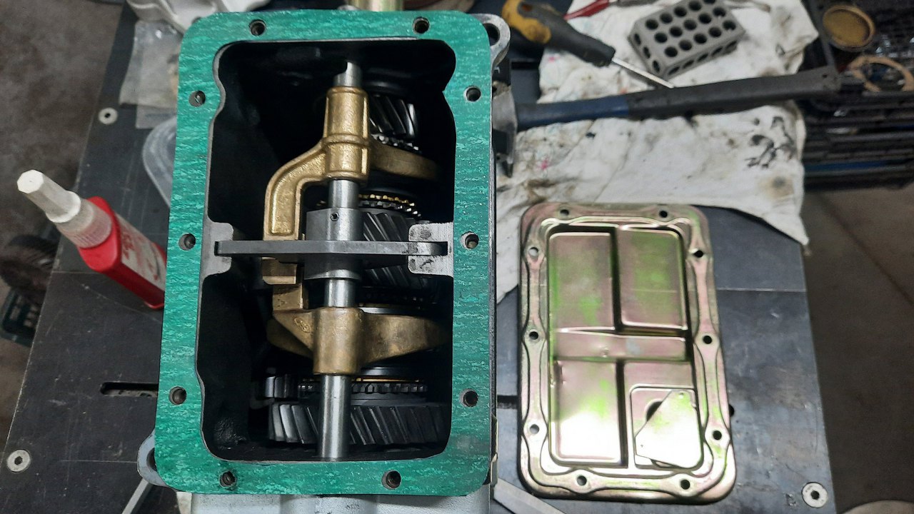 Skrzynia gotowa. Zostawiłem otwarte miejsce na zębatkę napędu prędkościomierza, żeby można ją było zmienić w zależności od tego, do auta z jakim przełożeniem tylnego mostu trafi.