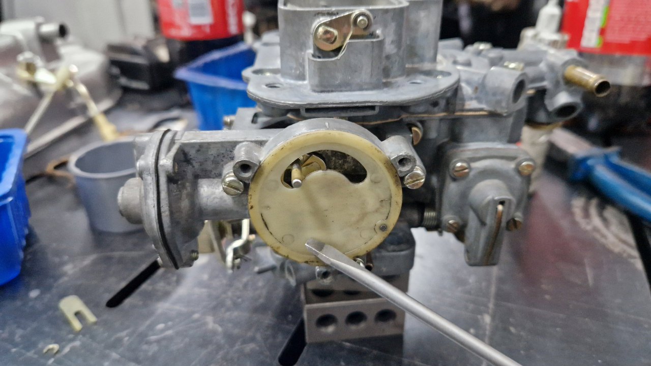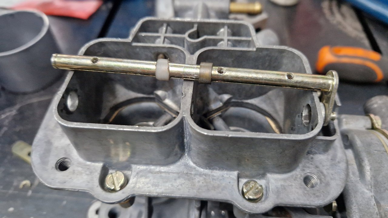 Wracamy do ssania. Mechanizm jest przykręcony do korpusu i podpięty cięgnami do przepustnic i klapek ssania.